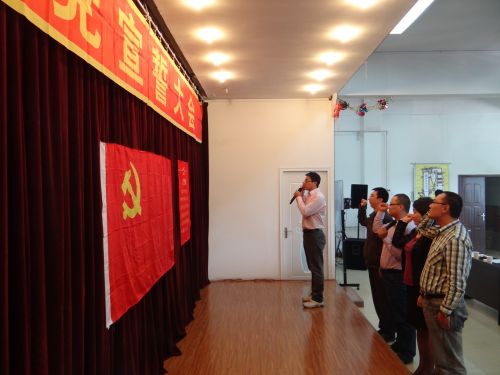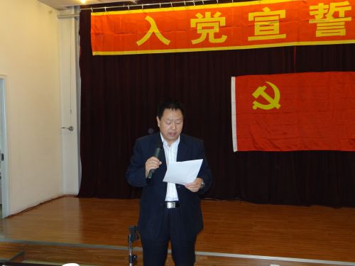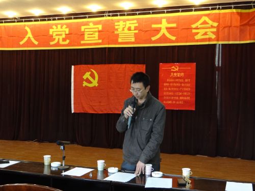 會場肅穆莊嚴,主席臺正中懸掛著中國共產(chǎn)黨黨旗。在雄壯的《國際歌》聲中,儀式拉開了序幕,四名預備黨員在黨小組長的帶領下,緊握右拳,面對黨旗莊嚴的進行了宣誓,表達了為共產(chǎn)主義事業(yè)奮斗終生的決心。儀式結束后,預備黨員代表張學文進行了發(fā)言,表達了能成為中國共產(chǎn)黨一員的激動和光榮,同時也深切感受到了責任感和使命感,今后要時刻以黨員標準嚴格要求,努力工作,堅定信念,為黨的事業(yè)努力奮斗,再立新功。