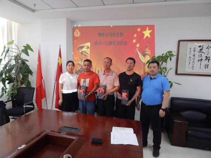 8月1日,物業公司黨支部開展“慶八一”主題黨日活動,共同慶祝中國人民解放軍建軍92周年,公司3名復轉軍人和支部全體成員參加了活動。