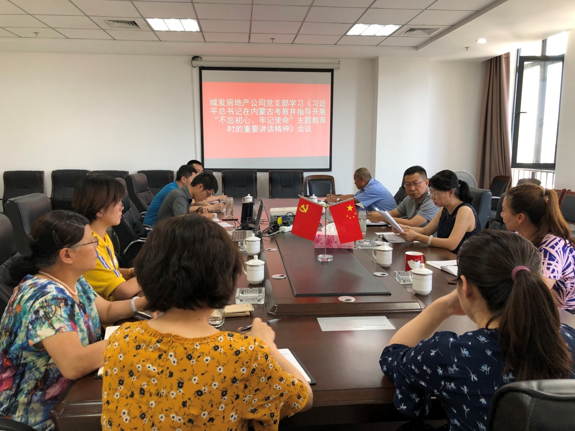 7月25日,房地產公司黨支部組織公司全體黨員干部和入黨積極分子,在城發集團11樓會議室學習了習近平總書記在內蒙古考察并指導開展“不忘初心、牢記使命”主題教育時的重要講話精神。